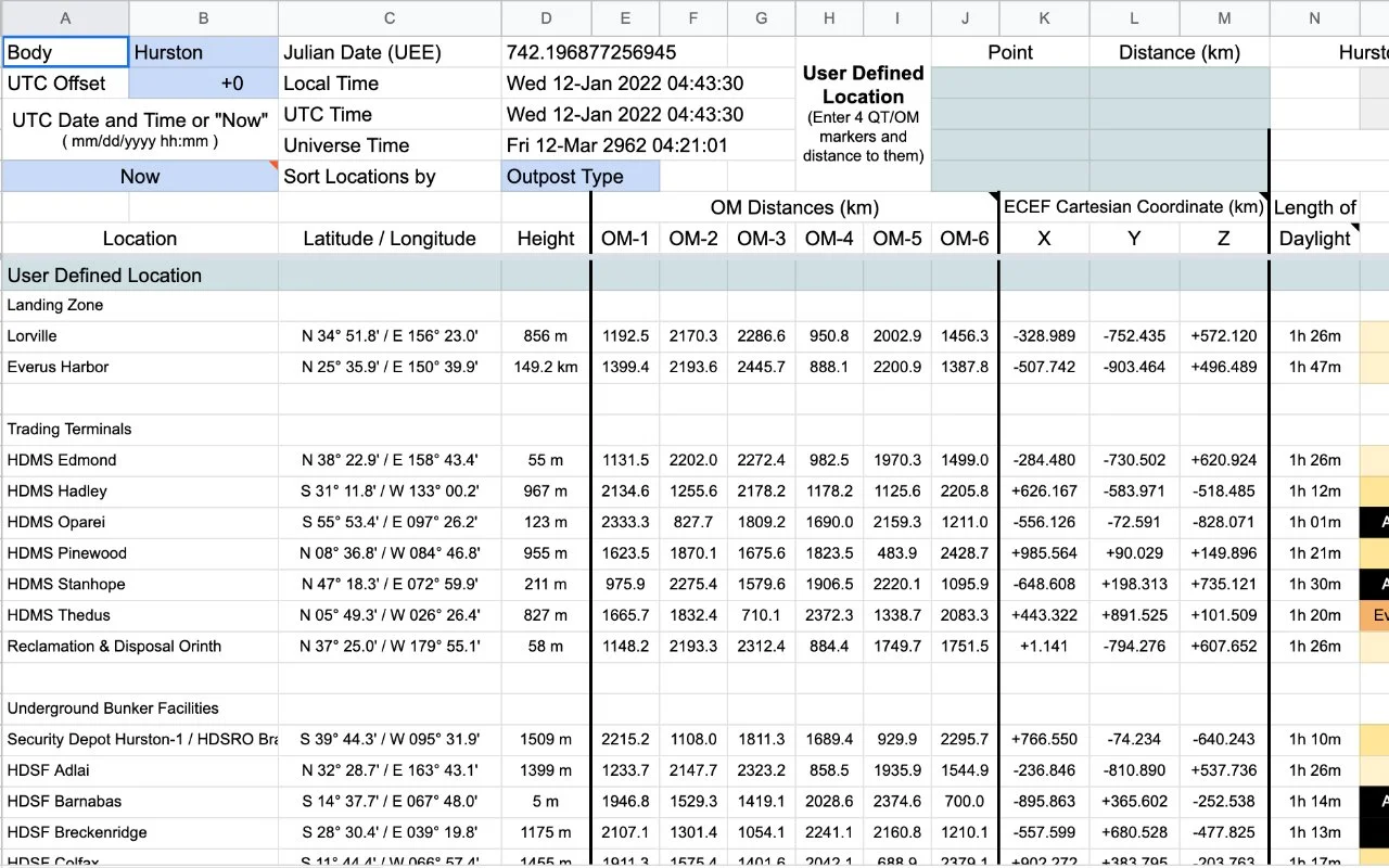 Surface charts of Stanton’s planets and moons, plus the Navigation Worksheet.