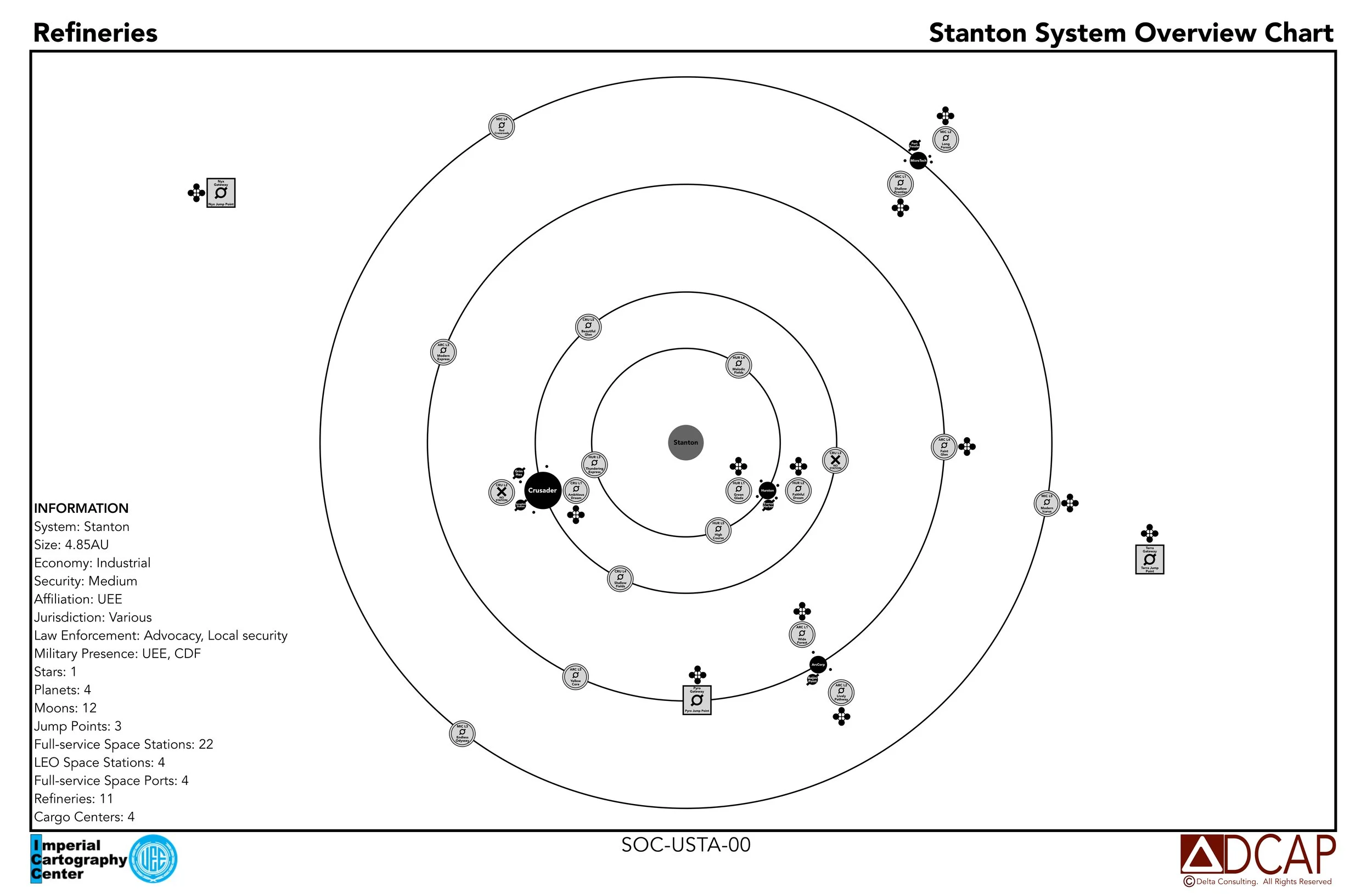 SERVICES: Cargo centers Major spaceports MEDICAL SERVICES refineries Station Services